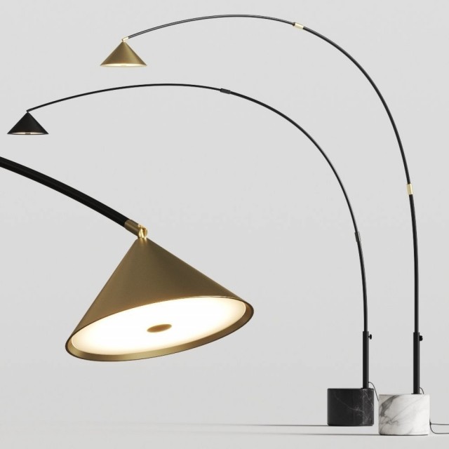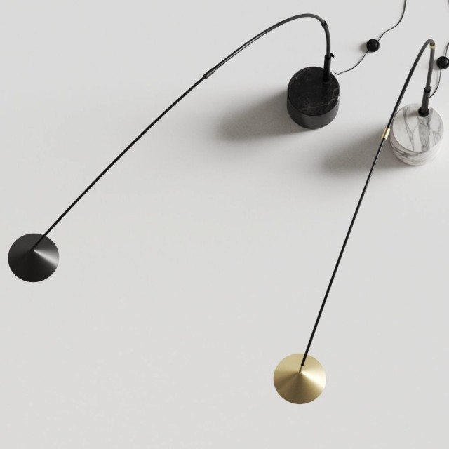 Lampen er produsert i stål med gulvfot i marmor stein som vist på bildet.