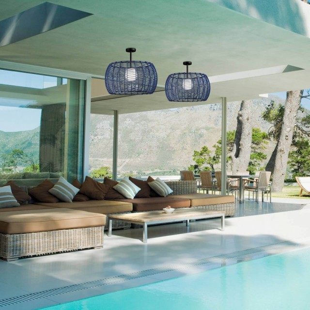 Poma 75 er en dekorativ taklampe for belysning av utomhus arealer. Passer fint som interiør belysning ved sittegrupper eller spisebord.