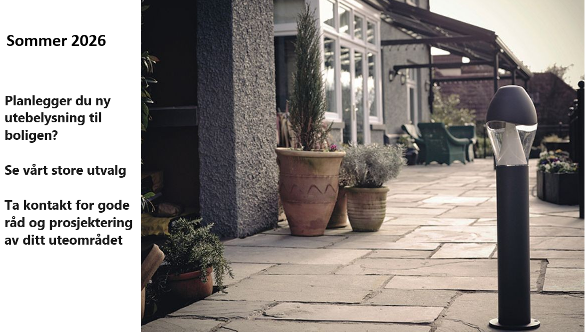 Fleksibel utelampe med roterbar lampehode. Kan monteres på bakke, vegg eller i tak. Kan leveres i ulike lysvinkler og ulike farger.